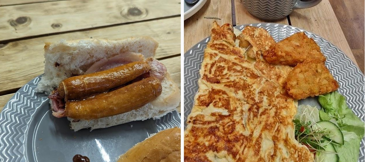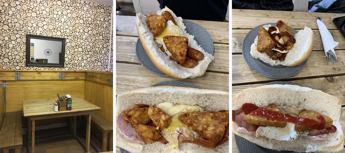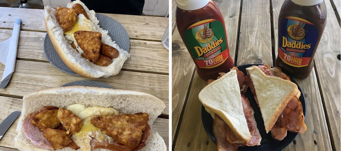 Delicious bacon and sausage roll. Good price too. Ketchup and brown sauce on the table for you. Make sure to ask for butter in your roll if you want it. Friendly service.