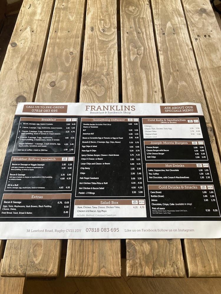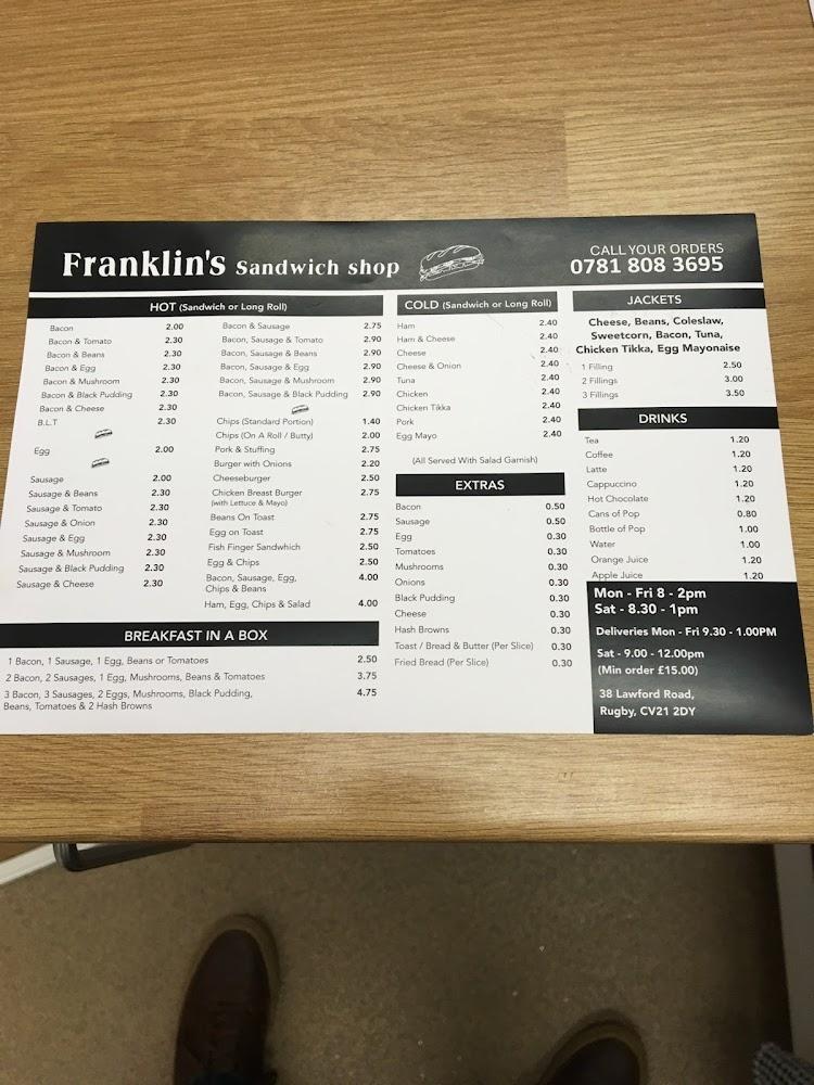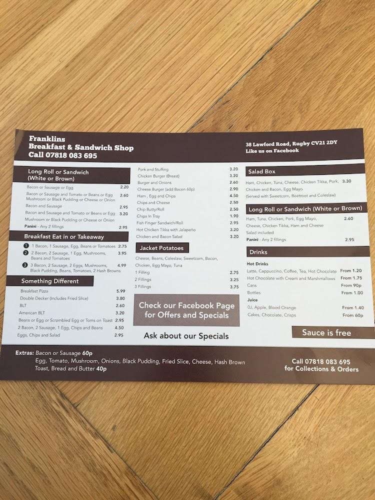 Located at 38 Lawford Rd, Rugby, Franklin's Sandwich Shop stands out with its casual vibe and friendly service. This eatery draws locals and visitors alike, becoming a go-to spot for breakfast and lunch. Open daily, it encourages both dine-in and takeaway options, ensuring flexibility for every customer's needs. The entrance is wheelchair-accessible, welcoming everyone in the community. Visitors can enjoy the atmosphere while savoring their meal, whether it’s a quick coffee or a leisurely brunch. The surrounding area offers free street parking, making it convenient for those who drive. Franklin's captures the essence of local dining, fostering a sense of community through great food and even better service.